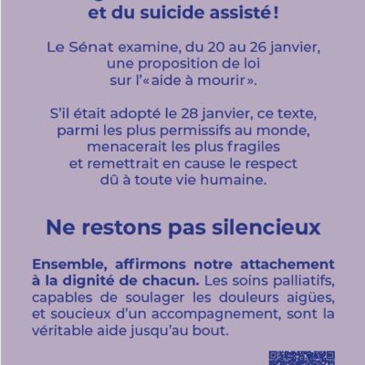 La proposition de loi sur l’«aide active à mourir», après avoir été rejetée par le Sénat, revient à l’Assemblée nationale ce lundi 16 février. Le vote solennel aura lieu le mardi 24 février. Le texte qui va être soumis au débat entraîne clairement notre pays sur la voie de l’euthanasie et du suicide assisté, avec des mesures graves comme l’absence de clause d’établissement ou le délit d’entrave. Même la loi sur les soins palliatifs, qui avait bénéficié d’un large consensus, se trouve aujourd’hui fragilisée, avec la suppression de la mesure visant à créer des maisons de soins palliatifs.