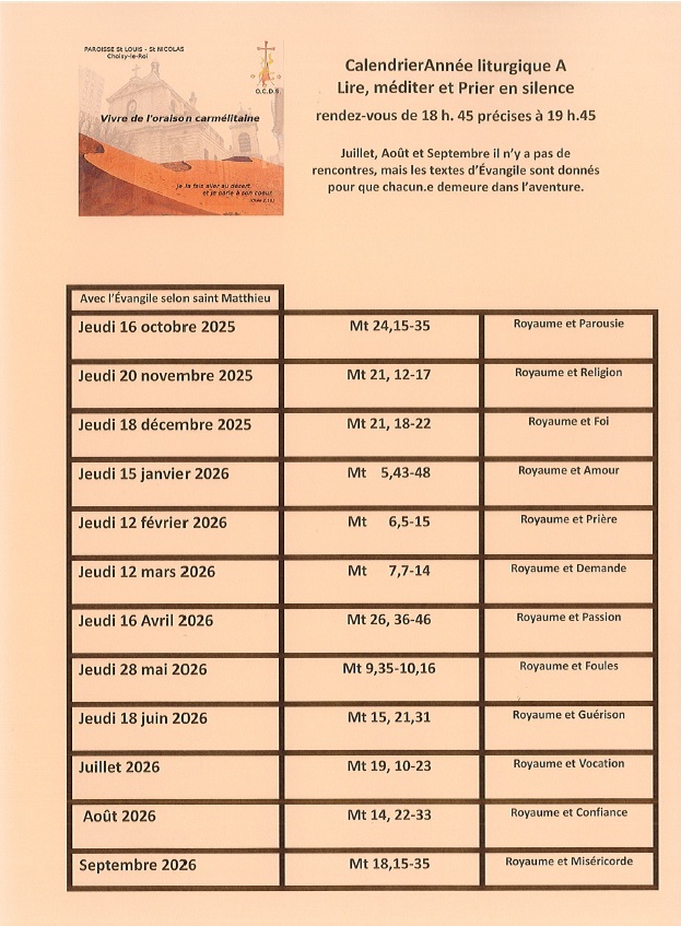 Le groupe de spiritualité carmélitaine, nous propose de vivre l’oraison à la manière de Thérèse d’Avila.